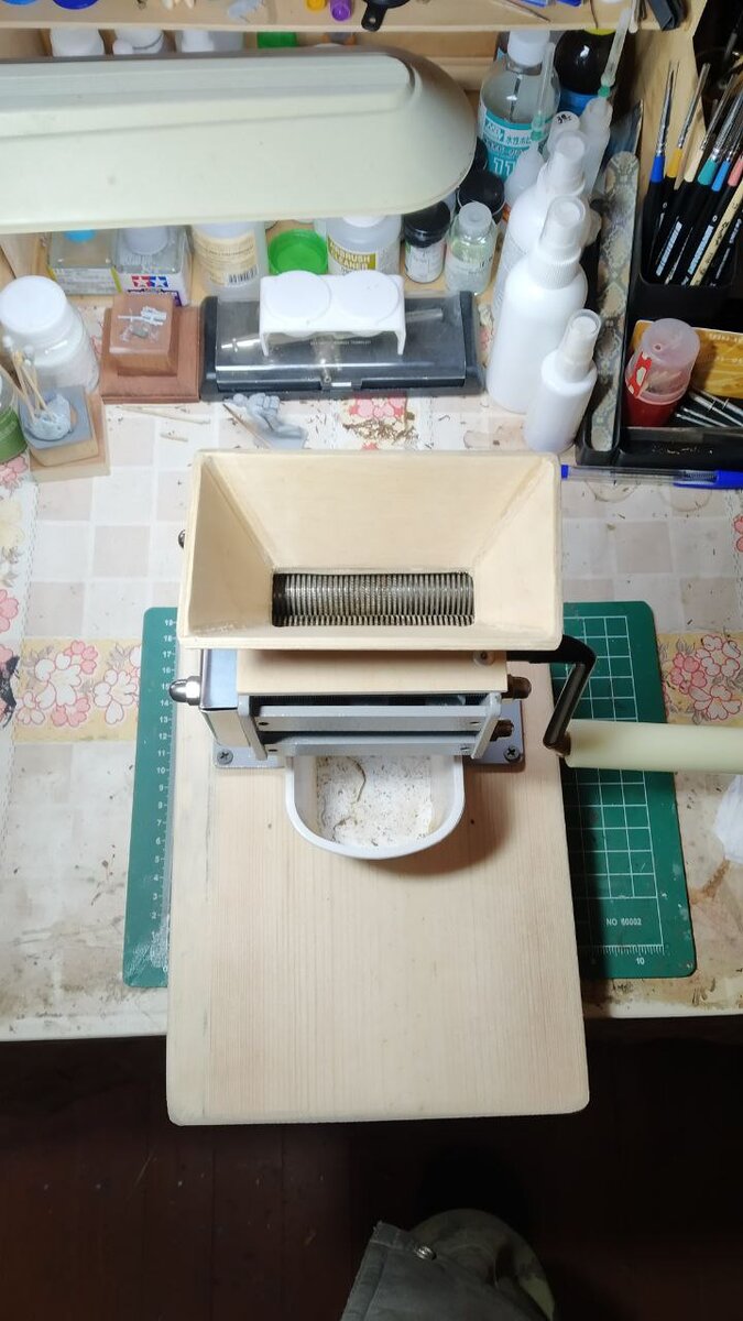 Нарезка пока еще чуть выше забивочной влажности, а я решил набить несколько сигарет сразу, горсть табака разложил на столе, минут через 10-15 он стал идеальной забивочной влажности, и я своей любимой шоркалкой Шарк забил на пробу три гильзы Дарк Хорс.
