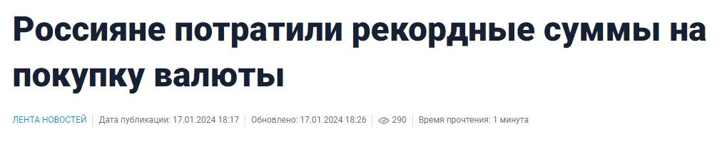 В декабре население России поставило третий после октября и ноября рекорд по покупкам иностранной валюты, названной в России "токсичной" - долларов и евро. На этот раз россияне за месяц скупили валюту на 179 млрд рублей - следует из "Обзора рисков финансовых рынков" Центробанка. Процитирую регулятора: Население в декабре осуществило рекордные в 2023 г. нетто-покупки валюты на 179,0 млрд руб., из которых на биржевом валютном рынке было приобретено валюты на 90,2 млрд руб., а через крупнейшие банки – на 88,8 млрд рублей. Практически весь объем покупок пришелся на доллары США и евро. Примечательно, что это уже третий подряд рекорд по скупке "токсичной" валюты в момент ее удешевления. Первый был в октябре, когда курс только начал снижаться: Второй - в ноябре, когда он уже заметно снизился: И вот третий - в декабре, когда курс оставался на низких отметках. Просто сравним объемы покупки населением валюты: Будет ли в январе (когда курс снова немного снижается) установлен новый реко
