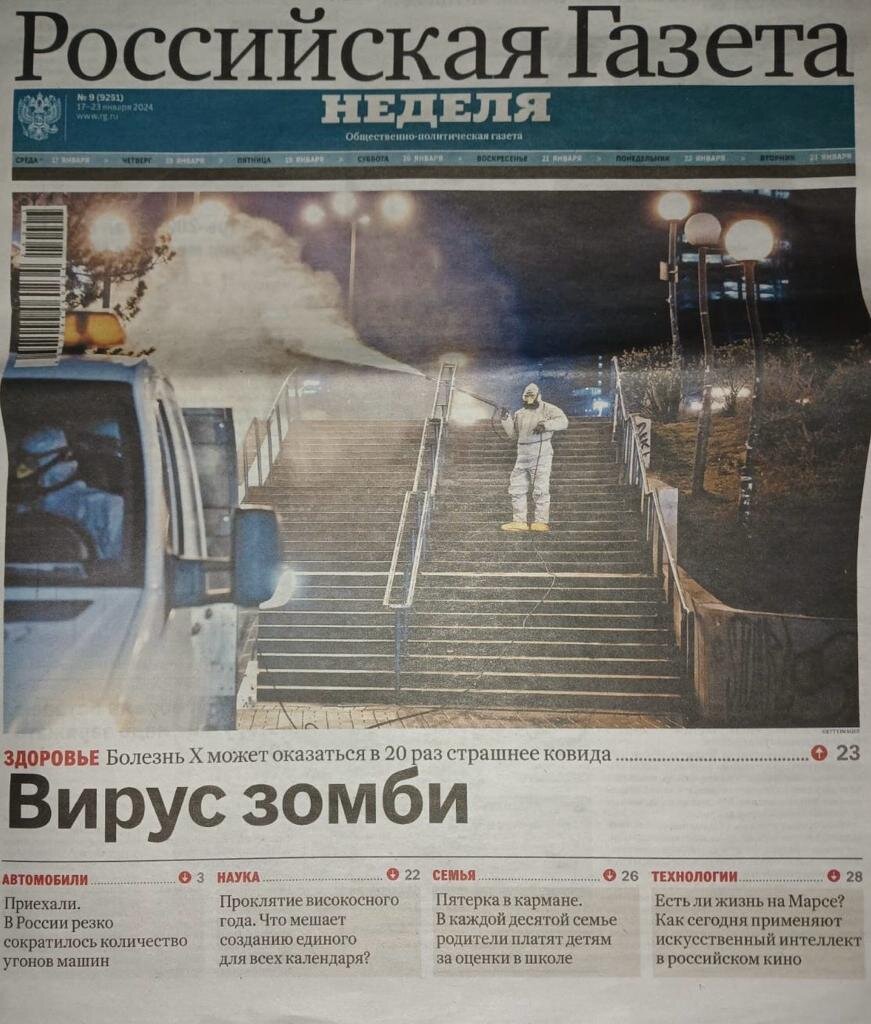 Я прочитал «РГ» от 17.01.2024 и не знаю, куда писать жалобу: то ли Соловьёву, который обещал возглавить СМЕРШ, то ли Киркорову, который ничего не обещал, но вдруг будет назначен руководителем спецслужбы, которая будет узко специализироваться на борьбе с ЛГБТ*. Потому как передовицу в «РГ» мог написать только «пи…рас». Называется она «Вирус зомби. Болезнь Х может оказаться в 20 раз страшнее ковида».