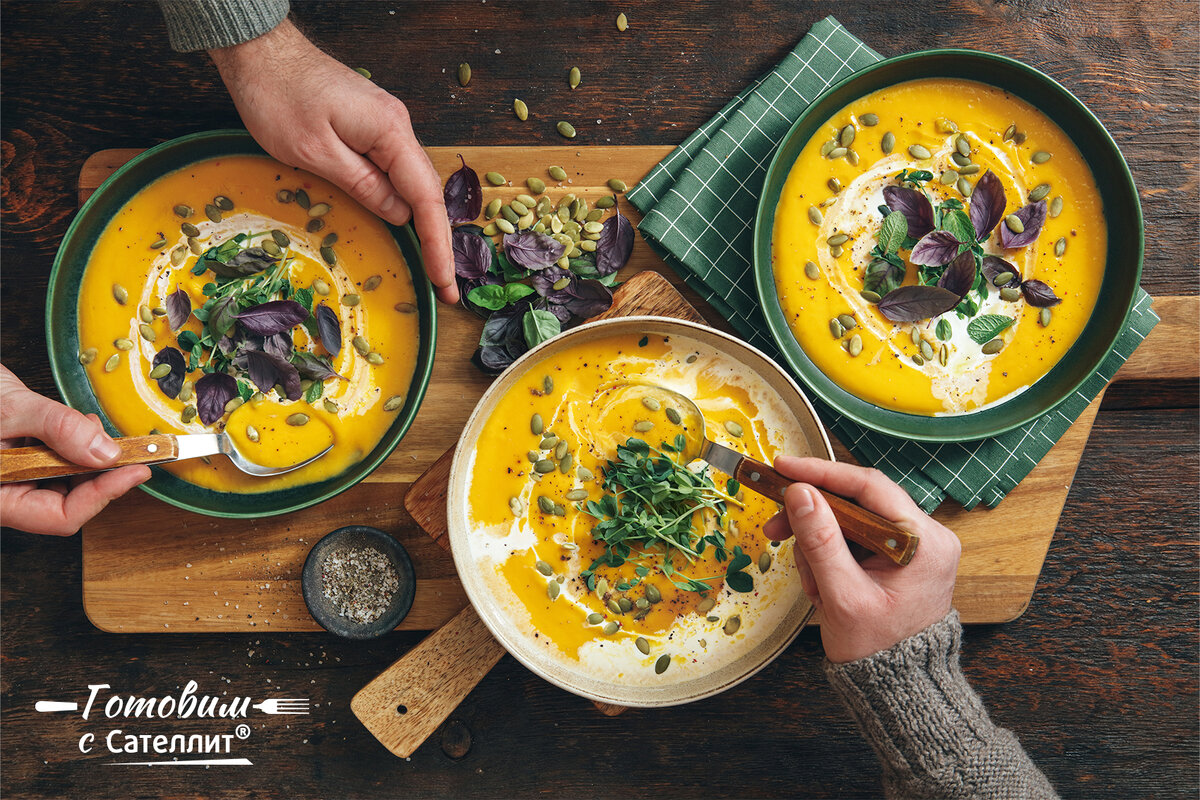 Тыква – продукт полезный и богатый витаминами А и С, калием и клетчаткой. Гликемический индекс вареной тыквы средний - равен 65, содержание углеводов низкое. Предлагаем вам рецепт согревающего тыквенного крем-супа. Ингредиенты: Приготовление: Подавайте суп с семечками тыквы и подсолнечника. Также его можно украсить микрозеленью, базиликом, мятой. Если вы любите более пряный и насыщенный вкус, то добавьте в суп имбирь, кардамон, мускатный орех, корицу.