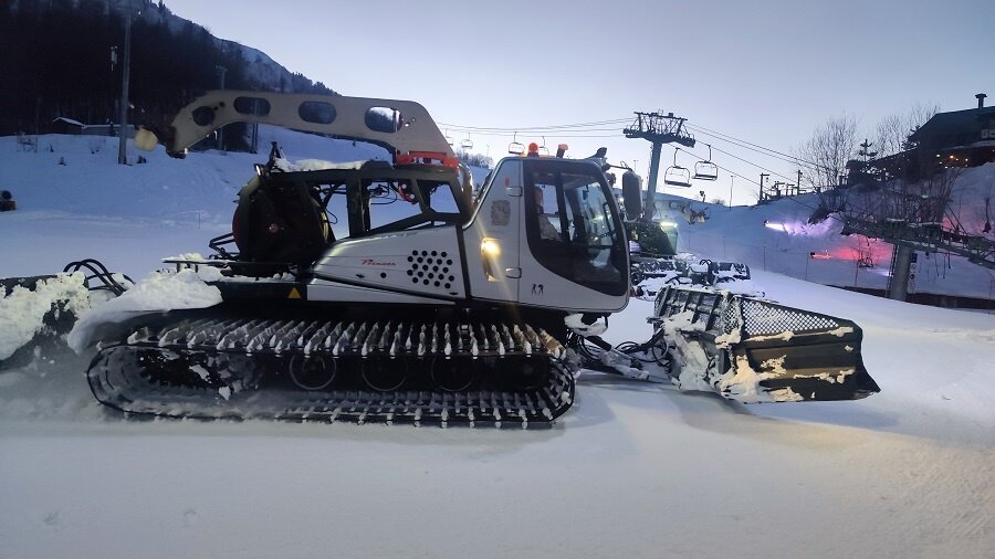 В горах Сочи стартовали вечерние катания для тех, кто желает спускаться со склонов в период с 18:30 и до 22:00. Специально для этого на трассах включается ночное освещение и романтическая музыка. Таким образом в пик сезона разгружаются трассы. В эти периоды на трассе действительно спокойно, убедился «Кубань Информ». Под звездным небом сейчас работает несколько спусков, для новичков и для опытных райдеров. Предшествует этому так называемый «парад ратраков» — многотонных машин, которые превращают изъеденный за день снег на трассах в идеально ровный «вельвет». Грузная с виду техника спускается с высоты 1500 м и доезжает до уровня 960 м, создавая идеальную поверхность для лучшего скольжения на лыжах или сноубордах. Вот уже второй вечер подряд ратраки спускаются по вечерам. До этого техника готовила трассы Курорта Красная Поляна лишь по ночам или ранним утром, но теперь этим действом и его «последствиями» могут насладиться туристы. Почти единогласно экстремалы отзываются о том, что снежное