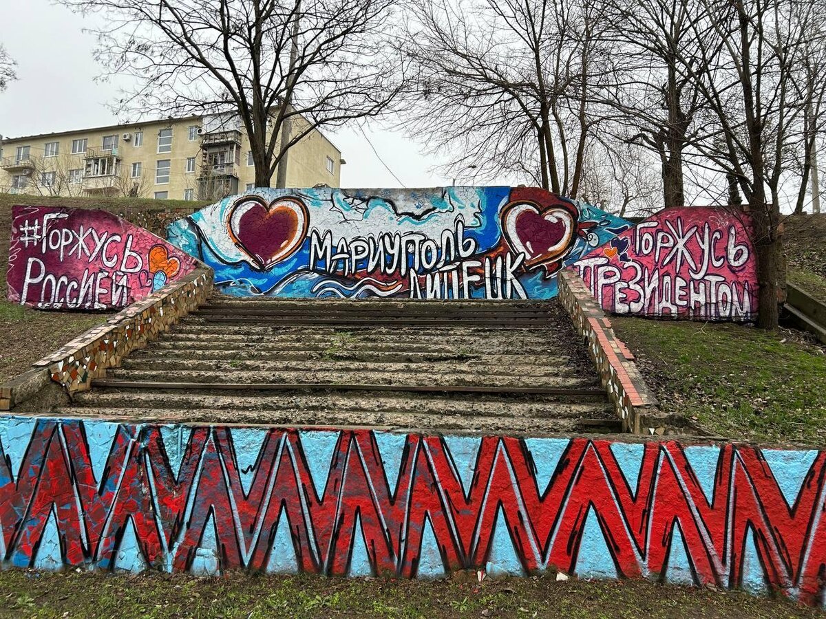 Граффити со словами благодарности Липецку украсило центр Мариуполя. Фразы «Мариуполь и Липецк», а также «Горжусь Россией», «Горжусь президентом» вместе с профессиональным художником нанесли местные жители на стену в культурном пространстве. Фотографией поделилась пресс-служба фонда капремонта Липецкой области. Липчане восстанавливают 30 объектов в Мариуполе, 23 из которых уже сданы. Среди них 3 учебных заведения — детский сад, школа и технический лицей. Еще одно здание передают городу. Все работы планируют завершить до апреля 2024 года. К слову, липчане в числе первых приступили к восстановлению города.