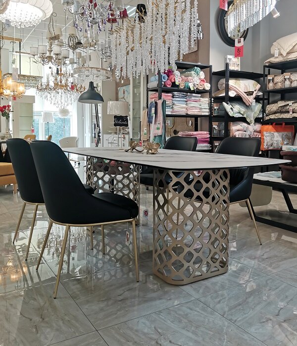 По традиции Новый год встречают в кругу семьи за большим праздничным столом. А после курантов заходят с поздравлениями соседи, друзья. И часто имеющийся стол не вмещает всех гостей. Значит пора приобрести новый в интерьерном центре Уют Холл! С огромным удовольствием представляем наши новинки. Шикарный стол для большой семьи: столешница из матовой итальянская керамики, толщина 13 мм, основание стола - металл, цвет - шампань, нераскладной, длина 220 см. Гармонично смотрятся с таким столом обеденные стулья из экокожи черного цвета и каркасом из металла цвета бронза. Обратим внимание на невероятно красивый стол с керамической столешницей цвета белый мрамор и металлическим основанием из металла. В собранном виде имеет длину 160 см, за счет вставок по бокам увеличивается до 220 см. Идеально сочетаются с этим столом обеденные стулья с обивкой из ткани букле белого цвета на каркасе из металла черного цвета. Все новинки можно оценить лично: интерьерный центр Уют Холл открыт каждый день с 9 до 2