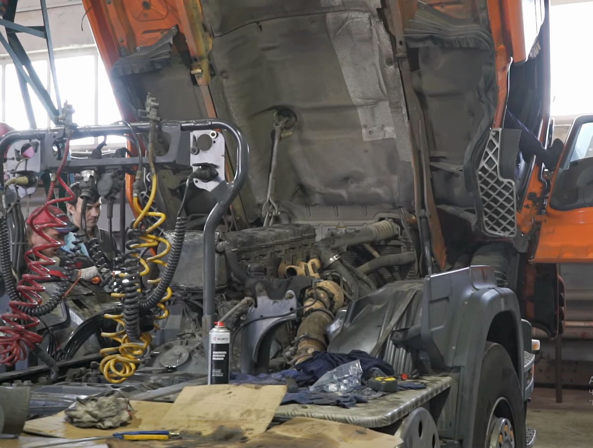 Приветствуем, друзья! Уже несколько дней мы решаем проблему клиента: прямо на трассе из выхлопной трубы тягача Скания повалил черный густой дым. Товарищ молодец, сразу заглушил двигатель и пригнал к нам на эвакуаторе. С этого момента началась практически детективная история по поиску виновного узла, и «убийца» до сих пор не найден. Сегодня мы продолжаем работу: восстанавливаем электронную систему и ставим на место актуаторы, которые почистили. Готовимся к пуску, ждем запчасти: на форсунки поставим оригинальные уплотнения, прижимные винты для клапанных механизмов. За полдня планируем справиться, если всё пойдет по плану. Итак, сняли все форсунки, сейчас осмотрим винты, которыми они прижимаются. Так как один из них был откручен, под подозрение попадают все. Явно видно, что винты откручивались неоднократно, у основания вытянута резьба, которая не должна блестеть так, как блестит сейчас. Такой болт мы сразу отложим в сторону. Также смотрим на остальные винты: какой-то можно оставить, с м