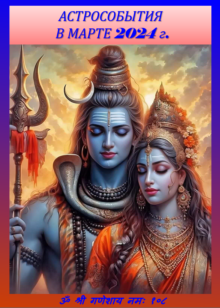 Самые важные события, которые нас ожидают в Марте - это МАХАШИВАТРИ и ЛУННОЕ ЗАТМЕНИЕ, транзит МАРСА по Водолею и соединение с Шани (Сатурном), и другие интересные АСТРОЛОГИЧЕСКИЕ СОБЫТИЯ, которые будут упомянуты далее.