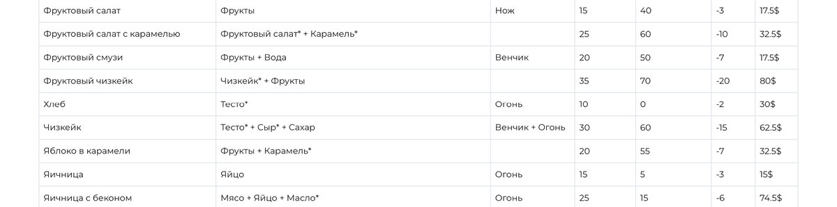 Как и в реальной жизни для приготовления сложных блюд необходим высокий уровень навыка, повысить который вы можете успешно приготовив определенное количество более простых блюд.