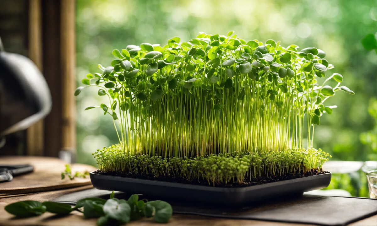 Микрозелень - это нежные и молодые ростки растений, которые собираются на самой ранней стадии их развития. Это маленькие зеленые всходы, которые содержат высокую концентрацию питательных веществ и полезных соединений. Микрозелень может быть выращена из различных видов растений, таких как шпинат, руккола, горох, брокколи, редис, горчица, капуста и др. Она собирается через 7-14 дней после посева, когда росток только начинает формироваться и имеет высокий уровень питательных веществ. Микрозелень обладает множеством полезных свойств и питательной ценности, вот некоторые из них: 1. Богатый источник питательных веществ: Микрозелень содержит высокую концентрацию витаминов (включая витамин С, витамин К, витамин Е), минералов (таких как железо, кальций, магний) и фолатов. Она также содержит растительные белки, антиоксиданты и фитохимикаты, которые могут помочь в поддержании общего здоровья. 2. Поддержка иммунной системы: Микрозелень богата антиоксидантами, которые помогают бороться с вредн