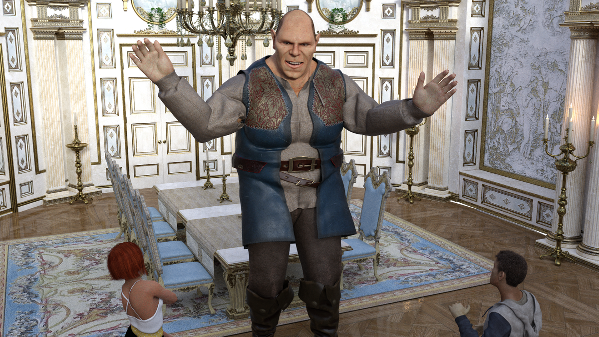 Появившийся великан радостно схватил в охапку одновременно всех, до кого дотянулся: Майка, Зеру и принцессу. Был бы рядом кто-нибудь еще, его постигла бы та же участь.
