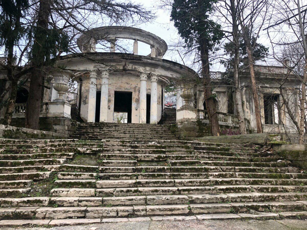В 1937 году, на самой высокой горе Ахун в Сочи, на высоте 666 метров над уровнем моря, был открыт загородный ресторан. В этом роскошном увеселительном заведении, построенном в стиле ампир, собиралась элита советского общества. Говорят, там бывал даже Сталин. Однако просуществовало это заведение ровно год, и по неизвестной причине было закрыто. По одной из версий в ресторане случился сильный пожар, который унес много жизней гостей и обслуживающего персонала, поэтому и было принято решение о его закрытии. Заброшенное здание удалось восстановить только в 50-х годах, после Великой Отечественной войны. Мраморные колонны вновь заблестели на солнце, огромные вазоны наполнились вьющимися декоративными растениями, к зданию была проложена новая асфальтовая дорога. На горе Ахун вновь открыли одноименный ресторан, в котором собирались высокопоставленные гости, проводились торжественные мероприятия. В стенах этого заведения бывал Юрий Гагарин, а однажды здесь ужинали Никита Хрущ