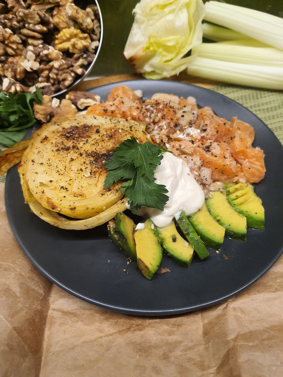 Рассказываю о том, что готовлю на неделе, стремясь совместить вкус и разнообразие в рационе с "чистым" составом и адекватными значения кБЖУ. Без сахара, мучного/круп и других продуктов глубокой промышленной переработки. Авторство фото и блюд принадлежит скромному автору этого блога. 1. "Стейк" из белокочанной капусты + авокадо + сугудай из форели 2. Кето-пирог с капустой + сыр + киви 3. Салат Метелка + сугудай + 10 г сыра 4. Гуакамоле-салат + черри + куриная голень 5. Салат с запеченной тыквой, 'Айсбергом' и скумбрией 6. Десерт "Сникерс" 7. Салат с кислой капустой, вакаме и сугудаем из форели 8. Салат с томатом, авокадо и сыром гриль. Филе минтая. 9. Салат с белокочанной капустой, скумбрией и яйцом. Стручковая фасоль. Авокадо. Ну а если вы хотели бы видеть в своей новостной ленте больше подобных публикаций, регулярно получать полезную информацию о тренировках и питании, а также пошаговые рецепты, то подписывайтесь на этот канал и обязательно оставляйте комментарии - тем самым вы мож
