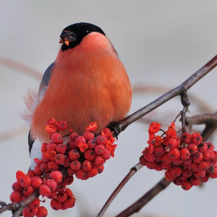 Ярко-алых снегирей хорошо видно на фоне белоснежной зимы. Эти птички появляются с наступлением холодов и радуют глаз обывателя до самой весны. Относятся к семейству вьюрковых. С латыни слово «снегири» переводится как «огненный». Действительно, птица оправдывает свое название! Известно девять видов снегирей, из которых нам знаком снегирь обыкновенный. Самочки этого вида имеют буро-серое брюшко, самцы – красно-розовое. Обитают в смешанных и хвойных лесах, в городской черте в парках и скверах. Из еды выбирают ягодки, семечки, почки, даже пауков. Но особую любовь снегири питают к рябине! Сказки нам говорят о том, что именно рябине снегири обязаны своим ярким окрасом. Сказка аналогична «Мухе-цокотухе»: в то время, когда остальные птицы леса делали себе съестные запасы на зиму, снегирь валял дурака. В итоге, когда наступила зима, ему пришлось питаться одними лишь ягодами рябины. Вот грудка у него и покраснела. А, может быть, от стыда за свое беспечное поведение летом? Есть еще легенда о кук