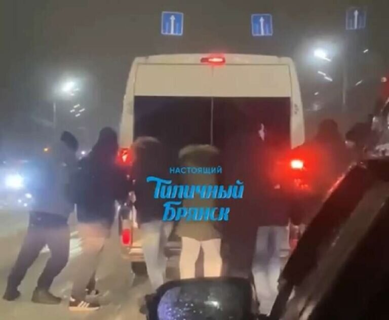 Навалились всем миром, точнее салоном и справились. Любишь по старой доброй традиции на маршрутке ездить – люби и в горку ее толкать в жуткую январскую гололедицу. Курьезной выдалась поездка для десятка минимум пассажиров одной из маршруток в Брянске. Причиной всему – сегодняшняя непогода, когда на смену снегопаду пришел ледяной дождь. Машины и поверхности проезжих частей быстро покрыла прозрачная скользкая корка… На уходящей в горку новой обледенелой дороге вдоль ТРЦ “Аэропарк” безнадежно забуксовал белый микроавтобус. Как ни пытался маршрутчик поехать дальше – все было бесполезно. Так и “коробку” можно запросто спалить. Кто предложил подтолкнуть маршрутку – водитель или кто-то из пассажиров, нам неведомо. Но это предложение было подхвачено с энтузиазмом. И все не только доехали почти “без опозданий”, но и заодно согрелись. Коллективная взаимовыручка попала на любительское видео. Тем временем почти все дороги в Брянске превратились в сущий каток. Весь вечер в разных концах огромного г