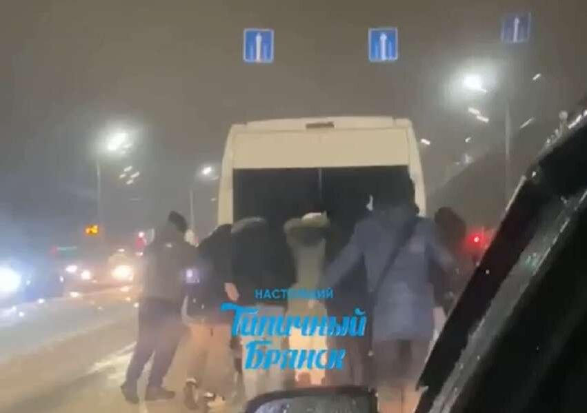 В Брянске на обледенелой дороге пассажиры толкали маршрутку в горку