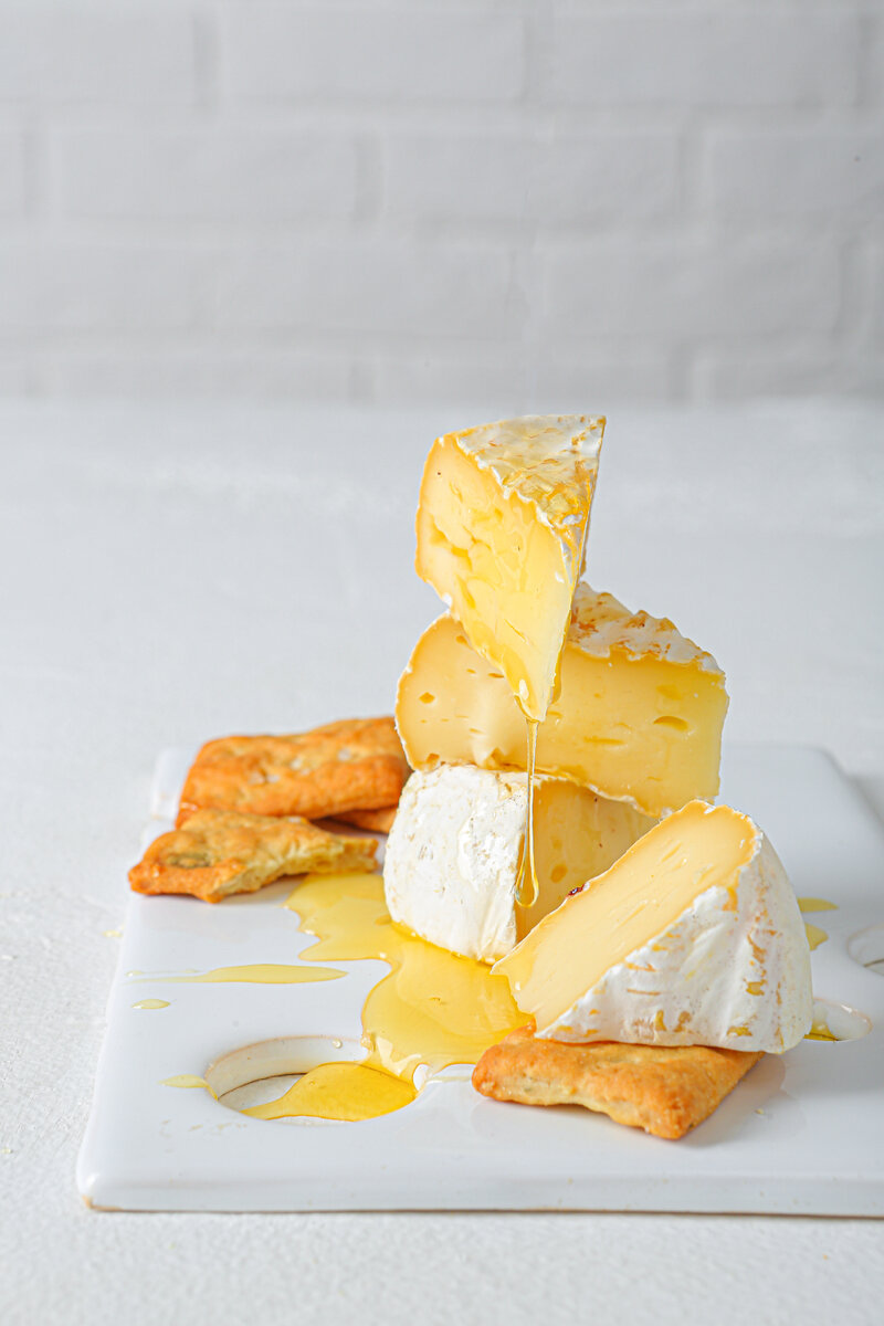 К цветочному мёду отлично подходят сыры с белой плесенью такие как, бри, камамбер, и сливочно-творожные сорта сыра с мягкой текстурой — рикотта, фета, моцарелла, адыгейский. Их сочетание создает тающий во рту десерт.