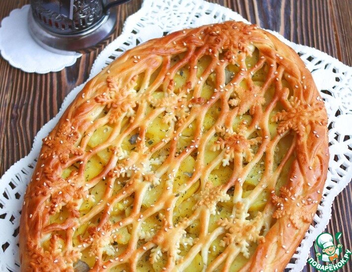 Вкусная выпечка на семейный стол. Ингредиенты для «Пирог с картофелем и сливочным маслом»: Для теста Для начинки Для смазывания пирога после выпекания и посыпки Рецепт «Пирог с картофелем и сливочным маслом»: В миску добавить 1 стакан теплого молока, далее добавить в молоко 1 ст. ложку сахара. Добавить 7 гр. гранулированных сухих дрожжей. Смесь размешать. Из общего количества муки взять 1 ст. ложку и добавить в молочную смесь. Смесь размешать. Миску со смесью накрыть полотенцем и поставить в теплое место для роспуска дрожжей. Через определенное время на поверхности образуется шапочка из мелких пузырьков. Опара готова. В опару добавить 1 ч. ложку соли (без горки). Затем добавить растопленное сливочное масло (50 гр.), добавить 1 ст. ложку растительного масла. Добавить 1 яйцо. Смесь хорошо размешать. Добавить остальное количество муки. Муки, возможно, потребуется от 3-х до 3,5 стаканов. Замесить тесто. Емкость с тестом накрыть пищевой пленкой или полотенцем и поставить в теплое место. Чер