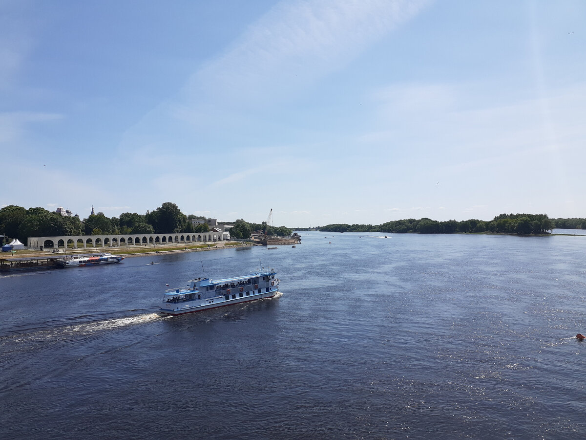 После прогулки на кораблике мы пошли по Горбатому мосту на другой берег реки Волхов. Туда, где видна Аркада Гостиного двора. На том берегу реки находится Ярославово дворище. Идем по мосту на тот берег. Вид назад. Видна звонница Софийского собора и купола собора. Пристань на берегу реки Волхов у стен Кремля. Аркада Гостиного двора. Над деревьями видны купола церквей Ярославова дворища. Ресторан "Фрегат Флагман". Скульптура "Уставшая туристка" :) Перешли по Горбатому мосту реку Волхов и идем дальше. Ганзейский фонтан. Фонтан с гербами стран Ганзейского союза (союз средневековых европейских городов заключен в 1367 году для беспошлинной торговли). Обелиск Героям Советского Союза. Схема Ярославова дворища. Из Википедии: