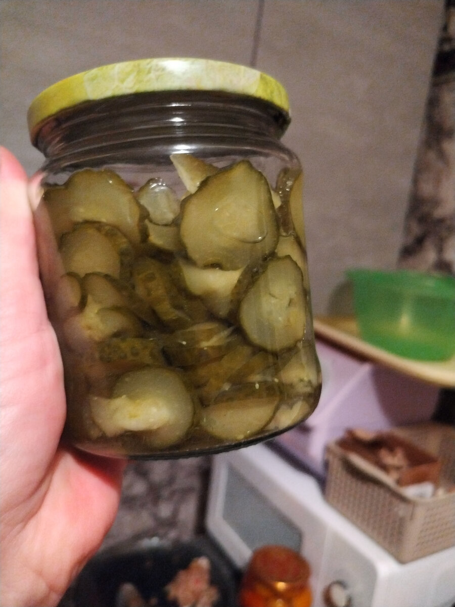Девочки это очень вкусные огурчики и рецепт очень лёгкий, хранение идеальное. Ловите 3 кг огурцов 6 ст ложек соли 250мл воды и 250 мл уксуса 9% разбавить 2 ст ложки сахара 2 ч ложки душистого перца 2 ч. Ложки куркумы 2 лавровый листа Порезать кольцами огурцы, посыпать солью и переодически перемешивать в течении 3 часов, промыть через 3 часа и слить воду. В кастрюлю влить и всыпать оставшиеся ингредиенты , за кипятить огурцы и проварить огурцы минут 5 помешивая пока не поменяется цвет в жёлтый. Раскладываем по банкам. Это очень вкусно можно и в пицу и салаты, и так лучек добавить и каплю масла как салат. Так же можно лук с огурцами проварить и по банкам. Можно и переросшие огурцы подходят хорошо