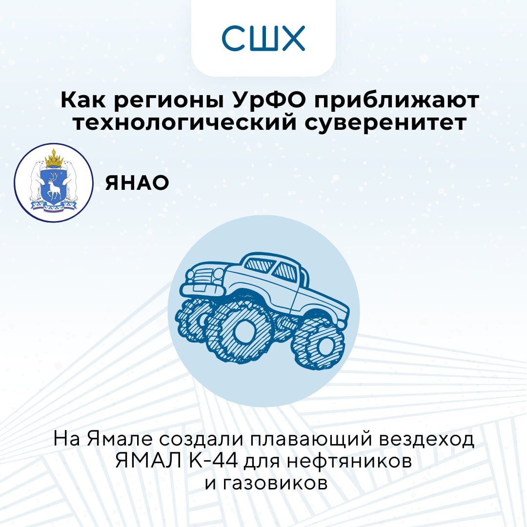На Ямале компания «Техинком» создала плавающий вездеход ЯМАЛ К-44 для нефтяников и газовиков. Ранее разработчики успешно завершили тестирование самосвала ЯМАЛ В-4520, предназначенного для работы в тяжелых условиях.