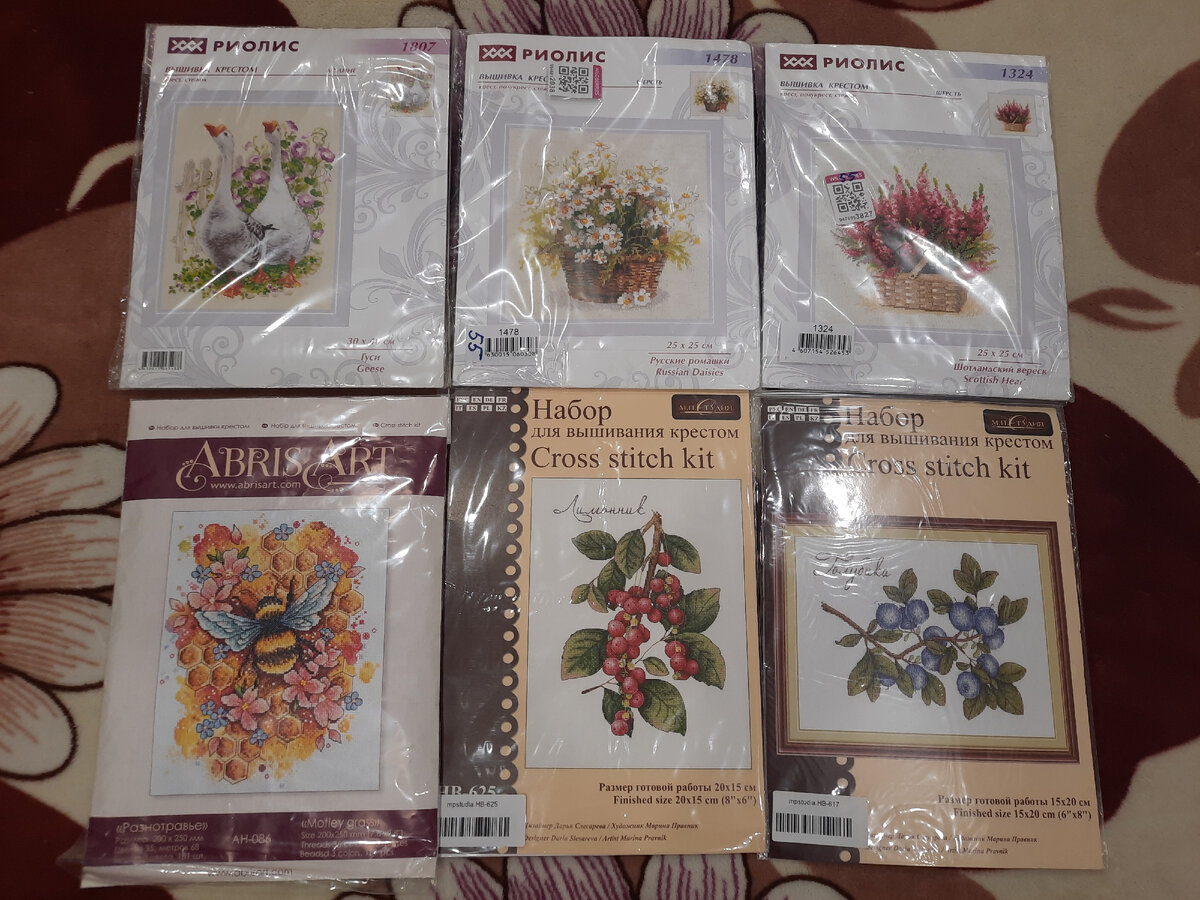 Мои рукодельные сокровища. Люблю нежно каждый набор, но что то уже дожидается своей очереди, а что-то "пенсионный фонд". Например "Пионы и дельфиниумы" Дименшенс или "Королевство книг" от Сделай Своими руками