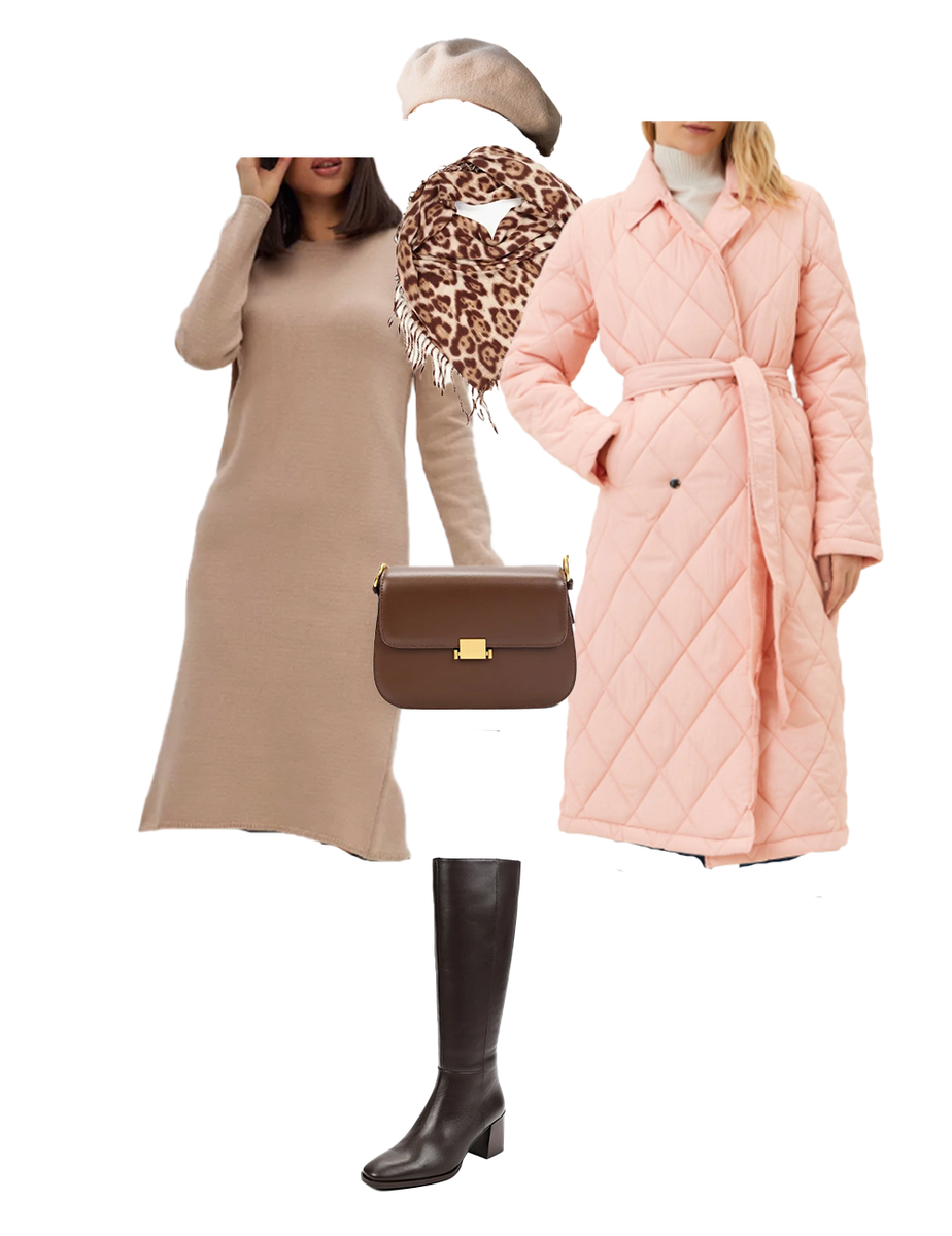 Главный цвет этого года - нежный персиковый Peach fuzz. Казалось бы, совершенно летний, а я вам докажу, что его реально можно носить круглый год. С этой целью я составила три разных по степени утепления очень стильных комплекта с вещами персикового цвета. Для образов я выбрала самые красивые сочетания этого цвета с серым, винным, пыльно - зеленым, бежевым цветами и оттенками коричневого. Практически все вещи из образов сейчас со скидками - можно выгодно освежить гардероб. Для вашего удобства все показано с ценами и ссылками или актикулами. Образ 1. Персиковый идеально сочетается с бежевыми и коричневыми оттенками. Тут такая прям нежнятина получилась, поэтому я добавила немного остринки -леопардовый шарф. Также хочу отметить растяжку цвета от бежевого до горького шоколада - очень красиво. При желании платье можно будет приталить ремнем - оно не супер свободное, поэтому не будет лишних складок. А можно оставить и свободно - тоже отлично смотрится. Составляющие: 1. Пальто стеганое за 5 0