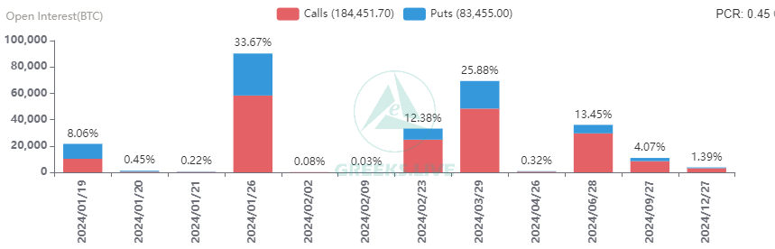 Срок действия 22 000 опционов BTC истекает с Put Call Ratio ( коэффициент пут/колл ) - 1,1, и Maxpain point (максимальная болевая точка, - цена, при достижении которой актив принесет финансовые потери наибольшему числу держателей) находится на отметке 44 000 $. Условная стоимость 890 млн. $. Срок действия 211 000 опционов ETH истекает при коэффициенте пут/колл 0,55, и Maxpain в 2500 $. Условная стоимость 520 млн. $.