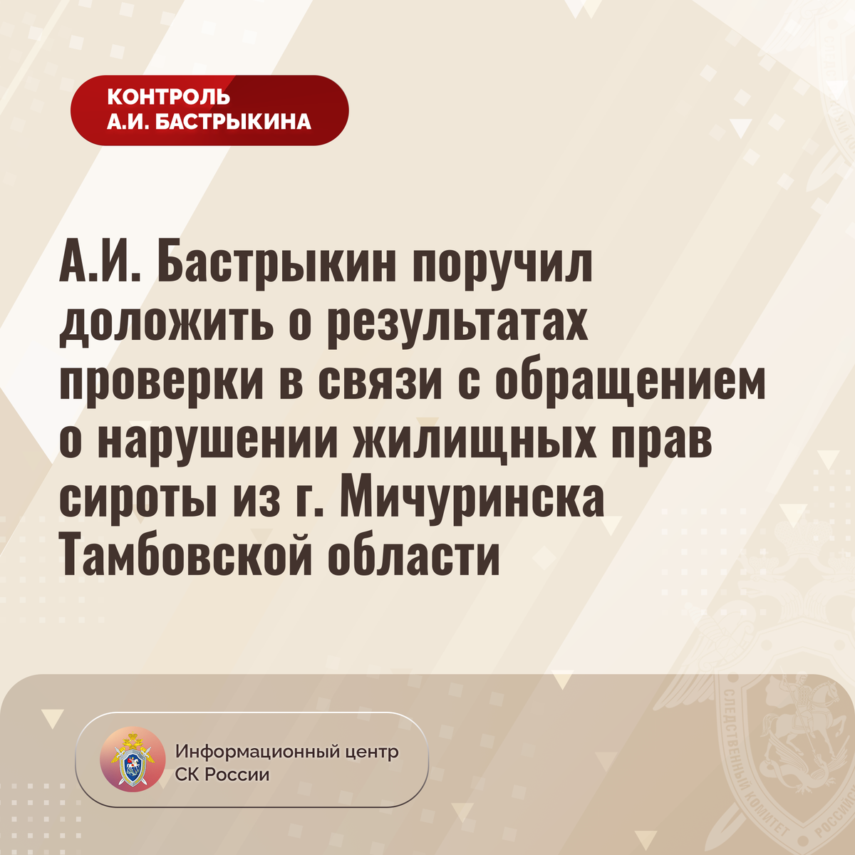 А.И. Бастрыкин поручил доложить о результатах проверки в связи с обращением о нарушении жилищных прав сироты из г. Мичуринска Тамбовской области