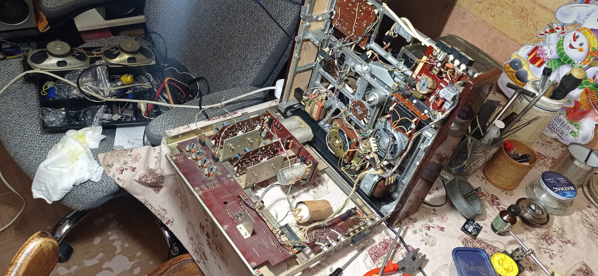 Хочется спросить и это детище завода Точмаш, я про катушечный магнитофон Комета 212, это просто жуть какая то, но стоит заметить что хоть он и собран из " интересных материалов" - звучит вполне себе замечательно. Здравствуйте товарищи, из двух магнитофонов собрал один, вышло видео где я наглядно показал его проблемы, пришлось провозиться три дня, но по итогу я доволен, аппарат работает уже второй день без нареканий. Купил я его поскольку у отца такой был, вот и решил восстановить да оставить в свою коллекцию. Был приобретён за 1500р, разборка показала что маховик тонвала развалился, сделан из силумина что там повлияло на это трудно сказать, ибо внутри ржавчины не было. Купил второй на донорство за 1300р, там маховик в отличном состоянии, но шасси уже было другой модификации, переставил этот маховик, подобрал нужные пассики и всё заработало. Привет передала перемотка, тут сразу две проблемы, первая это опять таки силумин он чуть разбух и ход штока регулятора перемотки был затруднён, вто
