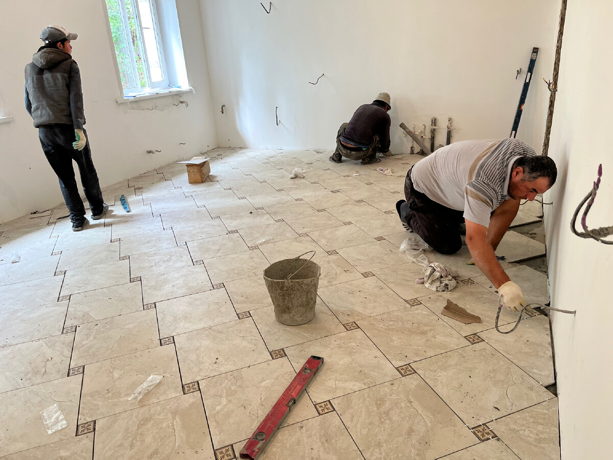За два дня выложили керамогранитом почти всю кухню. Осталось выложить по краям, где приходилось «выкраивать» плитку по размерам. Выкладывали кухню двое- старший бригады, который давно занимается строительством и член бригады, тоже со стажем. Когда стали выкладывать по краям, пришли ещё двое, которые в это время выполняли другую работу - зам. бригадира и совсем молодой подмастерье, без опыта. Что я хочу сказать подробным описанием мастеров. Забегая вперёд, после выкладки всей плитки по дому, и на стенах, и на полу скажу, что мастерством мне больше понравился зам. бригадира. Он все работы выполнял качественно, без последующих переделок. Наряду с некачественной укладкой керамогранита в кухне, о которой я рассказала в предыдущей статье, с затиркой швов тоже получился казус. Доверили затирку самому молодому неопытному «мастеру». Да, где? В кухне! В самом большом помещении, можно сказать это лицо дома! Вот уж я там намучилась, оттирая плитку от наплывов затирки. Не поверите! Я целый ме