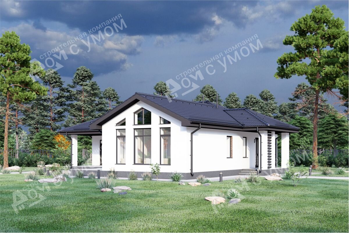 Проект "Брусника" стал популярным благодаря Г-образной форме дома, просторной кухне-гостиной со вторым светом, удобной планировке и большой террасе. Характеристики: Общая площадь: 171,5 кв.м
