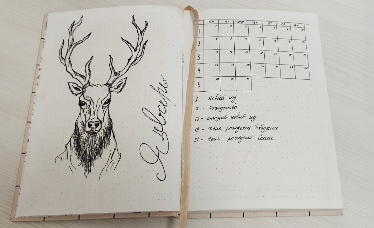 Разворот на январь Что такое Bullet Journal ? Bullet Journal это способ ведения ежедневника продуктивно и каждый день. В своём блоге я хочу рассказать как веду свой ежедневник, рассказать о разных способах и показать красивые развороты, буду выкладывать полезные странички. Забегайте, пользуйтесь, наслаждайтесь