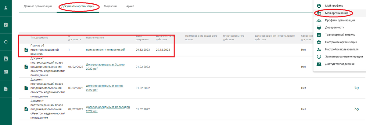 Перед началом проведения инвентаризации в раздел «Моя организация» обязательно добавьте приказ о составе инвентаризационной комиссии. Иначе система не даст провести саму инвентаризацию, а выдаст ошибку.