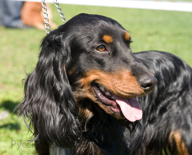 "Глаза светловаты... веко приспущено... морда коротковата... уши низко посажены... подвес на шее... прямовато колено... дерет хвост...."