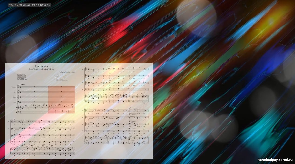 Ноты, хор, партитура голосов.Ноты здесь:https://terminalpay.narod.ru/shop/187453/desc/requiem-in-d-minor-k-626-wolfgang-amadeus-mozart-khor-fortepiano