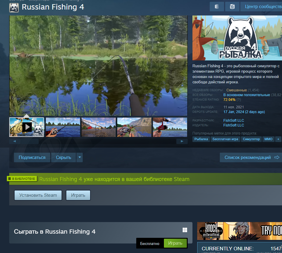 В STEAM БЕСПЛАТНО РАЗДАЮТ Russian Fishing 4 и два дополнения