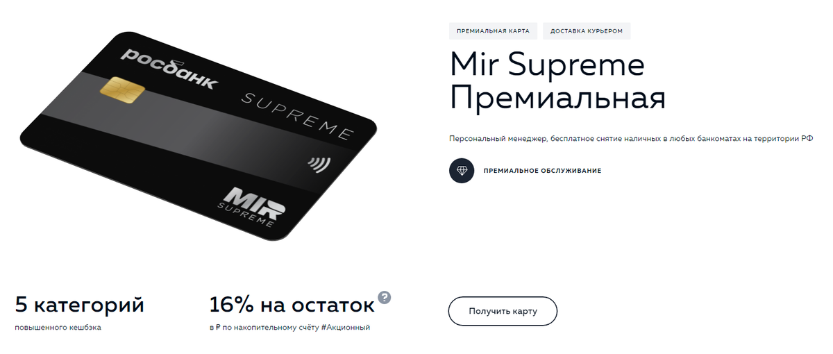 Кешбэк-картой сегодня никого не удивить. Но многим держателям карт разных банков ежемесячно приходится одну из них использовать для оплаты зоотоваров, например, другую — для продуктов, а третьей оплачивать поход в кафе или ресторан, чтобы получить максимум выгоды. Для путешествий и вовсе оформляют новую карту, потому что кажется, что идеальной системы кешбэка для всего и сразу еще не придумали. В статье расскажем, чем кешбэк карты Mir Supreme от Росбанк Премиум отличается от других предложений и какие категории товаров по ней приобретать выгоднее всего. ✔️ 5 категорий повышенного кешбэка Каждый премиальный клиент Росбанка получает повышенный кешбэк 3% в пяти выбранных категориях и 1% гарантированного кешбэка на все остальные покупки. Повышенные категории можно менять ежемесячно в зависимости от запланированных покупок. Листайте карусель, чтобы выбрать свои 5 категорий из списка → ✔️ Специальные предложения от Росбанка Всех, кто собрался покорять горные склоны на Красной Поляне, ждет сп