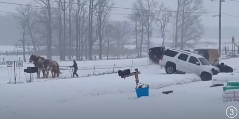 Посмотрите, как лошади спасают внедорожник из снежного плена