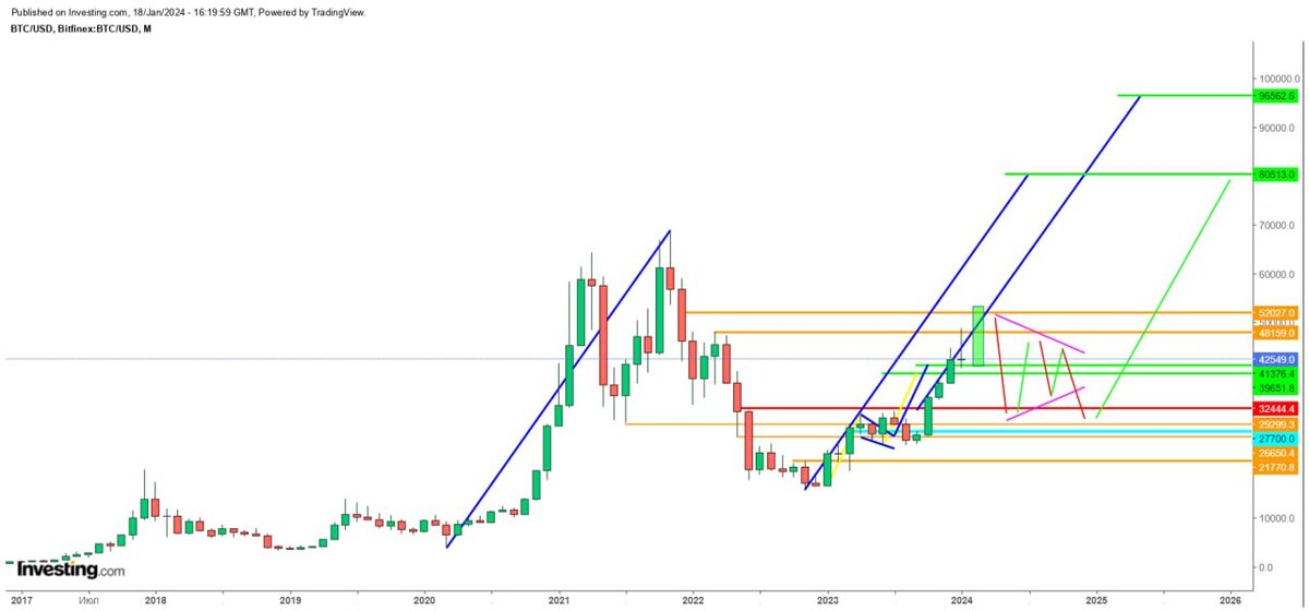 При этом совершенно не значит, что до начала подобного движения не тряхнут ценник к 39-37к$ и только потом туда