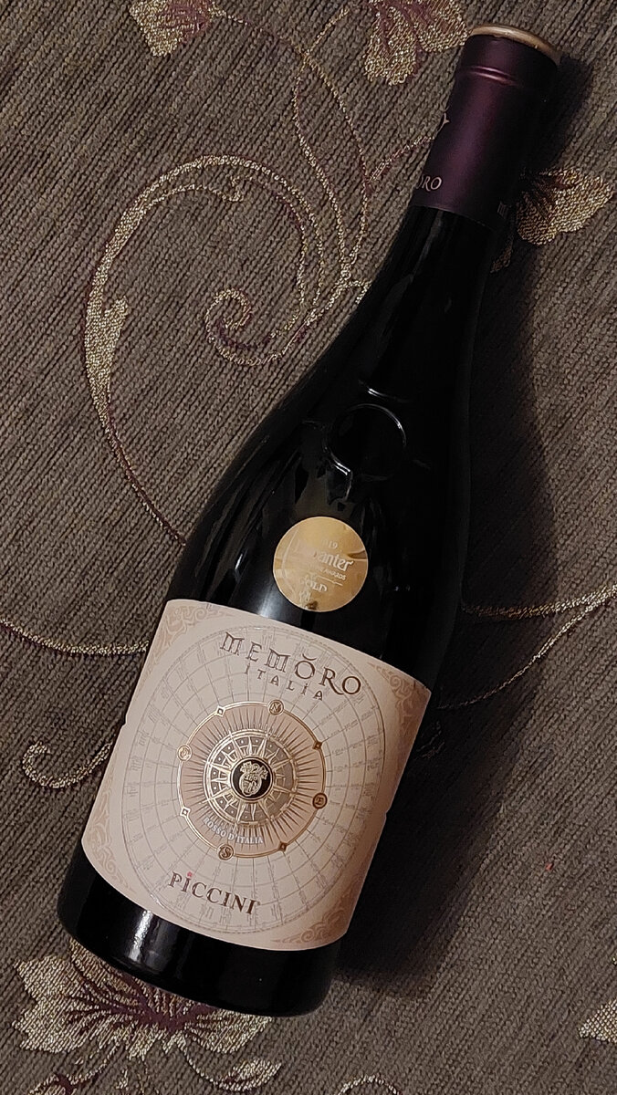 Некоторое время назад нашел на полках интересный ассамбляж из Италии. Цена была приемлемая, поэтому решил его попробовать. Сегодня расскажу вам про красное полусухое вино Piccini Memoro. Вино нам продают в бургундской бутылке темного стекла. На горлышке красуется золотая медаль Decanter. Этикетка выполнена с использованием астрономических, астрологических и прочих подобных символов и изображений. В целом оригинально и интересно. Метафизично. Интересно было бы узнать историю создания такого дизайна. Контрэтикетка (по крайней мере российская) очень лаконична. Только основная и необходимая информация. В купаж входит 4 сорта: Монтепульчано, Мерло, Примитиво, Неро Д'Аволо. И судя по этикетке, эти винограда приехали из самых разных апеласьонов Италии. Т.е. вино не doc, и даже не igp/igt. Его бы классифицировали скорее как vdt, т.е. столовое вино. Цвет темно-вишневый. Аромат вишневый, глубокий. В нем все ипостаси вишни. Во вкусе тоже много вишни, копчёная говядина, черносливовый джем. Танины