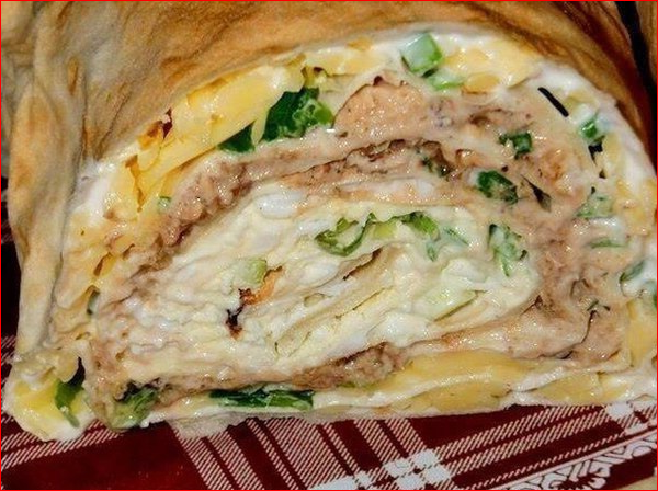 Рулет "Мимоза" из лаваша. Делается за считанные минуты