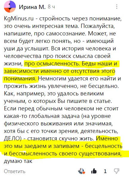 Наши комментарии, как этот, к примеру, дают мне основание думать, что ещё не совсем я замучила читателей скучной наукой:
