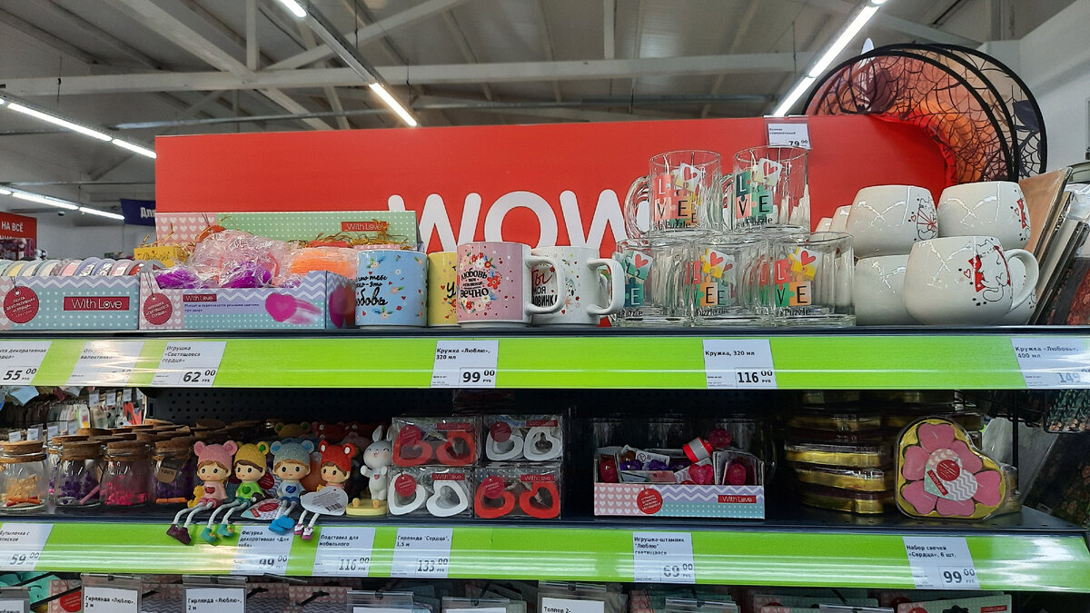 Всем привет,на этой витрине Лови момент в Фикс Прайсе товары постоянно обновляют,новогодние товары уже убрали,и сейчас товары к дню влюбленных,14 февраля.Сейчас вместе с вами посмотрим. Магазин находится по адресу Ростовская область,Зерноградский район,станица Мечетинская,улица Ленина,50 На моем канале уже есть обзор из Фикс Прайса,про новинки ко дню влюбленных,появились еще кое какие новинки ,сейчас вместе посмотрим. Кружка "Любовь", With Love, украшена рисунком с милым котиком. Из такой кружки хочется пить самые любимые и вкусные напитки! Отличный подарок для себя и близких! Объём: 400 мл. Приблизительный размер: 8х9х10 см. Состав: фарфор. Товар представлен в ассортименте.Цена 149 руб. Кружка 320 мл цена 116 руб. Кружка Люблю 320 мл,цена 99 руб. Фигурка декоративная "Для тебя", With Love, выполнена в виде милого человечка с ножками-веревочками. Декор будет хорошо смотреться на книжной полке. Размер: 14х5 см. Состав: полирезин, полиэстер. Товар представлен в ассортименте.Цена 99 руб