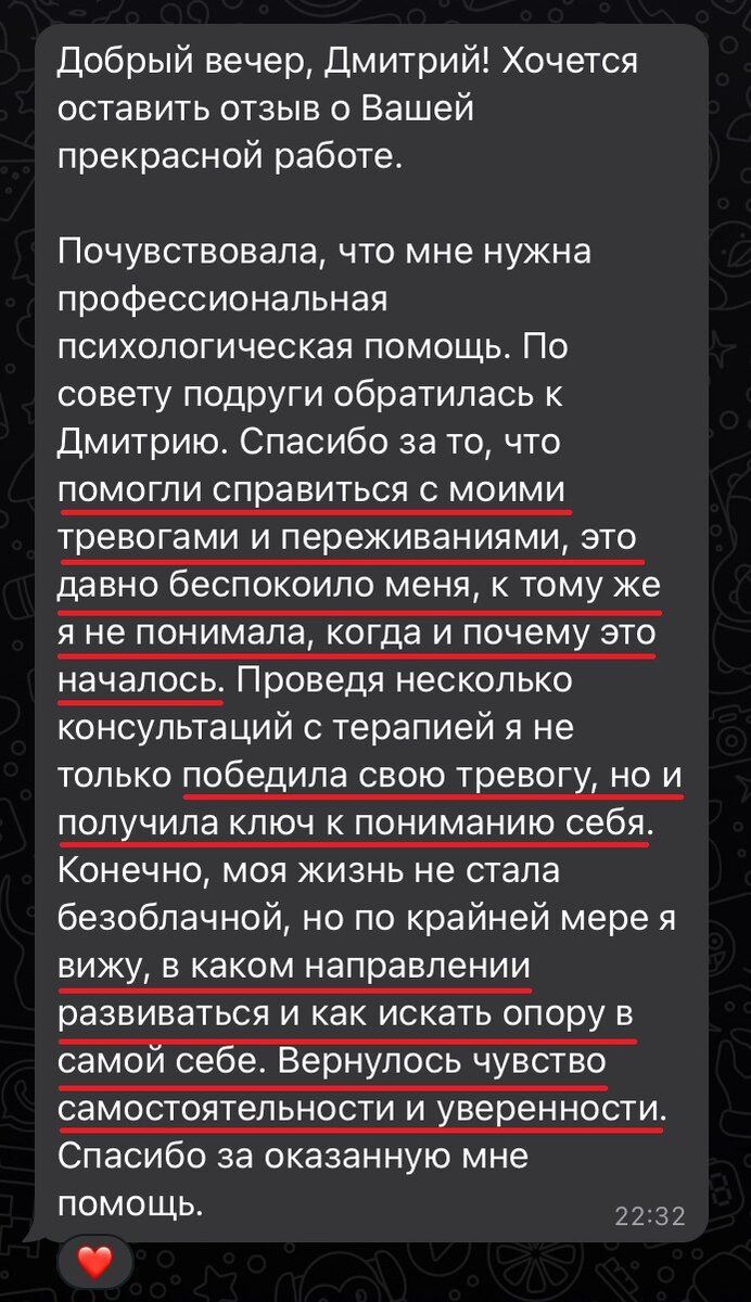 В этом кейсе моя клиентка переехала в другой город. Как же надо тревожиться, чтобы искать покой вдалеке от дома? Менять работу, заново ко всему приспосабливаться…