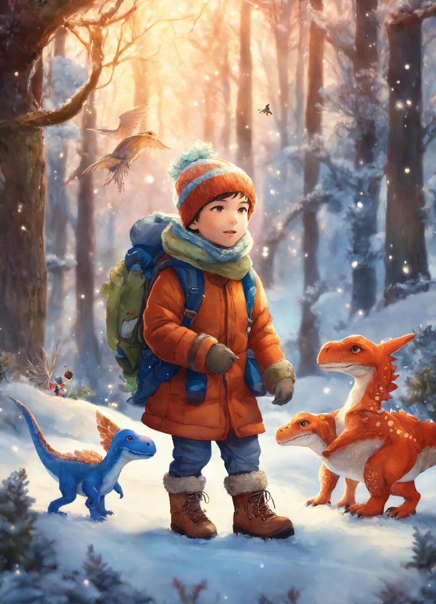 “Это плачет Сэйбер!” - сказал Джейк и побежал между деревьями, шурша ногами по опавшим листьям. Он направился в направлении шума и куста остролиста с красными ягодами. Сэйбер подбежал к нему, преследуемый парой птиц размером примерно с рождественских индеек, но только это были не птицы, потому что, хотя они были покрыты перьями и бегали на двух ногах, но у них были руки вместо крыльев и когтистые кисти. Один из них держал палку и тряс ею. Другой поднял камень и запустил им в бедного Сэйбера. Джейк поднял камень и швырнул его обратно в двух маленьких динозавриков, которые остановились как вкопанные, и оба уставились на него. Джейк уставился в ответ и у динозавров первыми сдали нервы, и они поспешили обратно в свое гнездо в кустах.