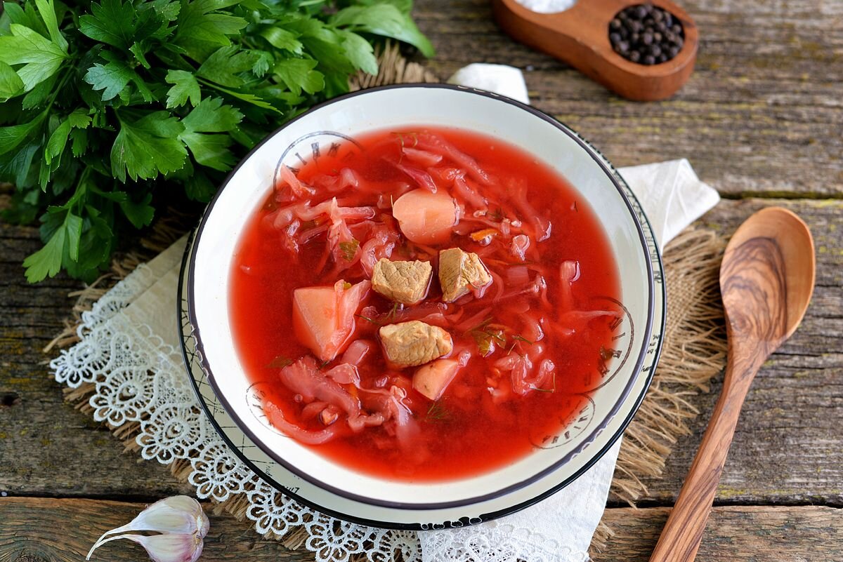 Первый глоток этого варева – это настоящий взрыв вкусов. Теплые и насыщенные красные оттенки борща создают ощущение уюта, а каждая ложка – это гармония соли, сладости и легкой кислинки. Говядина, морковь, свекла и картошка объединяют свои вкусы, создавая симфонию, которая погружает в воспоминания о домашнем тепле и заботе.