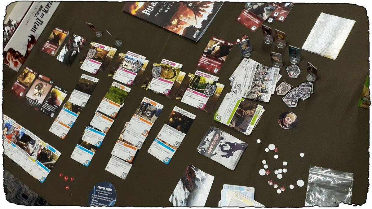 23.07.2019 С одноимённым аниме у меня сложились довольно теплые отношения. Я вообще не фанат всего этого, но сюжет затянул, и я на одном дыхании посмотрел все три сезона. Теперь вот жду четвертый, специально не читаю мангу. Племяшка моя тоже обожает «Атаку титанов» и когда Коля выставил на продажу эту настолку, я сразу её выкупил у него, чтобы потом с ней вместе и поиграть. Проблема была лишь в английском языке, потому что на картах присутствует много текста, и он не всегда простой. И у меня с этим делом не очень. Я, конечно, со своим средним уровнем знания мог перевести большинство карт, но вот правила шли тяжело. Сначала сидели с племяшкой переводили (она английский изучает), а потом сам с Google переводчиком. Тяжко. Ну и я, чтобы не мучиться с этим переводом, попросил Колю провести для меня партию, чтобы запомнить правила и потом уже самостоятельно играть. А потом и вкладыши с переводом вставить в протекторы. Ну вот… Хотелось бы сказать для начала, что все арты на картах взяты именн