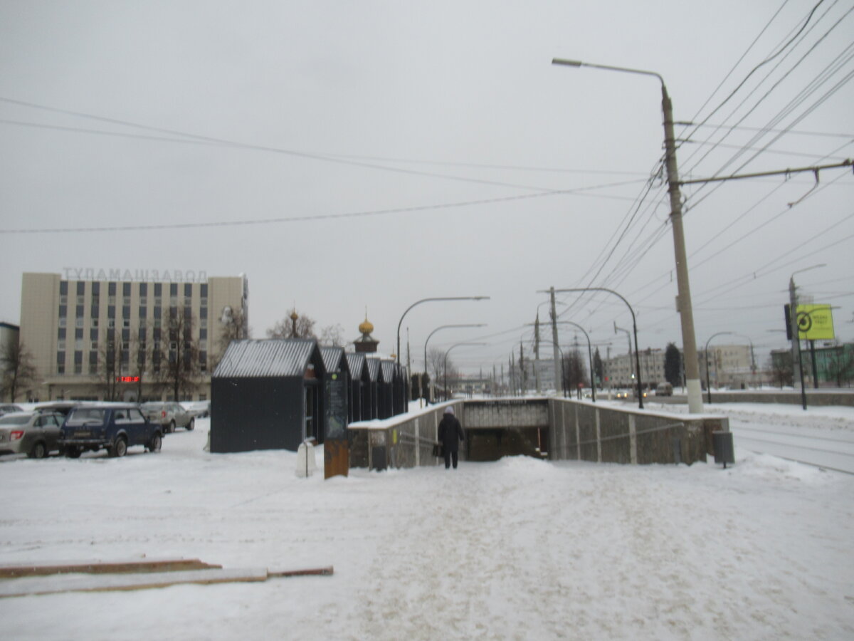 Во время прогулки 14 января 2024 года надо было перейти ул. Советскую по подземному переходу в районе ул. Мосина (еще по иному этот район называли "заводами"). Обратил внимание на то, что подземный переход был реконструирован. Что первым бросается в глаза, убрали торговые павильоны, визуально кажется, что переход стал шире, появились колонны. Другой особенностью является оформление перехода. Стены оформлены под старый город, среди изображений можно даже найти вагон конки, а также старую застройку. Интересной идеей можно считать экраны с меняющимися изображениями. На одном экране меняются картины почтальона, жандарма, светской дамы, дворника и уличного торговца, на другом известные жители города (его не фотографировал). Привлечет внимание экран с меняющимися видами старой Тулы. Оригинальные черно-белые снимки находятся в коллекции Н.И. Глагольева, на экране же изображения уже раскрашены. К идее раскраски исторических оригинальных изображений туляки отнеслись по разному, кому-то это н