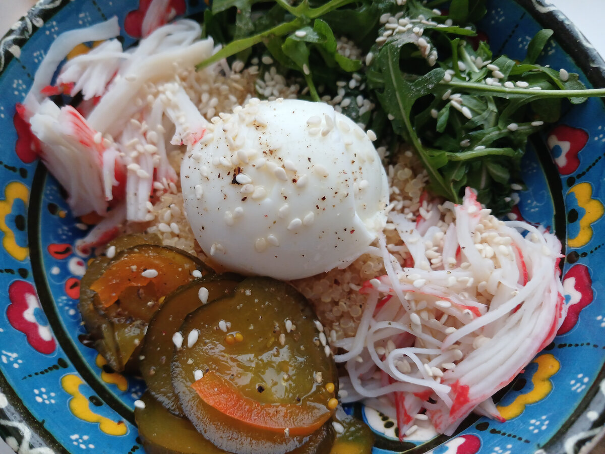 О моих запасах и расчете бюджета на месяц ЗДЕСЬ Первая покупка продуктов - Пятерочка, Вкусвилл, Дикси Покупка продуктов №2 -Вкусвилл, Вимм-Билль-Данн, Дикси Покупка продуктов №3 - Озон, Детский мир, Вкусвилл, Перекресток, Дикси, Tasty Coffee Покупка продуктов №4 - Перекрёсток, Вкусвилл, Светофор Каталог рецептов Среда -день боула на завтрак 😊 А в него кладу все, что нашла в холодильнике. Сегодня в основе боула киноа. Добавила к ней рукколу, огурчики как в маке, яйцо и снежный краб. Сверху - кунжутные семечки, и кунжутным маслом заправила. К кофе зефир и манго-конфетка На обед сварила суп с фрикадельками. Хотела с гречкой сделать. Но надо было открывать новую пачку. При этом были уже открытые овсяные хлопья. Так что добавила их в суп. После обеда - кофе с конфеткой. И на десерт черешня была. 😇 Впервые ее замораживала в этом году. И теперь буду постоянно ее на зиму заготавливать. Это прелесть что такое!!! Такая сладкая, такая вкусная!!! Только консистенция чуть мягче, чем летом. А п