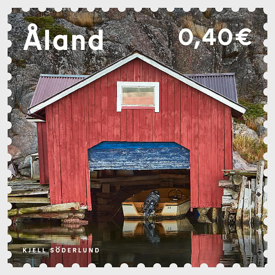 На марке изображены лодочные эллинги. Этот ряд эллингов расположен в бухте Вестерангавикен в Лемланде.