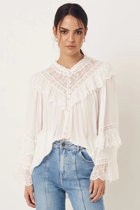 Романтические блузки идеально подходят для создания женственного и летнего образа. Блузки характеризуются нежными цветами, легкими тканями, но, прежде всего, деталями: кружевом, оборками, воланами, пышными рукавами или эффектными воротниками, которые придают нежный вид . Различные фасоны и цвета позволяют каждой моднице найти подходящую блузку. А еще их отлично носить в повседневной жизни: если вам хочется чего-то более элегантного, кружевные блузки, например, станут идеальной альтернативой рубашкам, ведь их можно комбинировать так же, как и рубашки, но выглядят они еще более стильно. 1. Белая блузка с джинсами Идеальный повседневный образ: летящая, романтическая блузка с джинсами. Белые блузки – с рюшами или без – идеально сочетаются с джинсами. Они придают грубому материалу женственность. Изменение стиля создает привлекательный общий вид. 2. Кружевная блузка ярких цветов Белая блузка для вас слишком просто? Тогда можно выбрать кружевную блузку яркого, модного цвета. Такая блузка ст