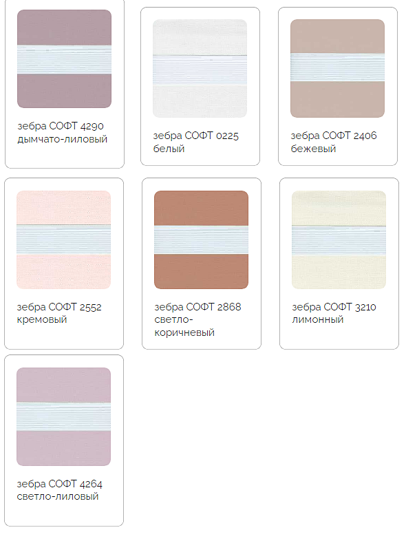 Полупрозрачная ткань пропускает до 45% света. Уникальный дизайн ткани позволяет регулировать степень освещенности и создает уютную атмосферу в любое время суток. Это современное решение, изделия экологичны и безопасны для детей, это не только украшение для вашего интерьера, но и гарантия уюта в доме. Шторы Зебра – модернизированная модель рулонных штор, соединившая в себе внешний вид рулонных штор и функционал горизонтальных жалюзи. У рулонных штор зебра Софт двойное тканевое полотно с имитацией натуральной фактуры, с чередованием прозрачных полоc (типа вуаль) и плотных тканевых полос. Такой синтез позволяет регулировать уровень поступающего света путем изменения положения полос по отношению друг к другу. В момент совмещения плотных полос в помещении создается полумрак. Положение полос можно регулировать с помощью механизма управления. Образцы в наличии: Заказывайте рулонные шторы зебра у "Жалюзи Мастер" Ч